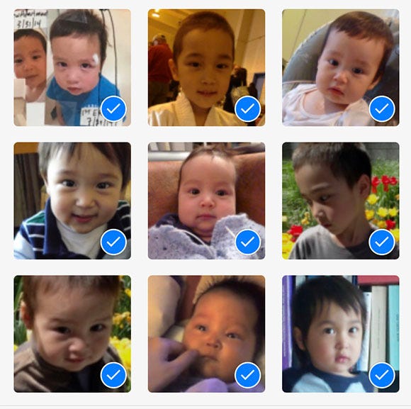 I only saw the costume photo today, when I chose to go into the Photos app to see what was going on. There was a whole stack of Memories waiting for me, assembled by the AI as it kept trying to see what might get me to engage with my own archive. A mass demonstration in Tian'anmen Square on May 19, 2008, to mourn the victims of the Sichuan earthquake. A trip to Hong Kong in December of that year, labeled "Back in the Day." A friend's 2005 wedding at Scientology headquarters in Washington, D.C. Ice floating by on the Hudson in the polar vortex in 2014, and my younger son playing with the chain of the window shade that same day. "Portraits of..." that younger child, with the ellipses representing the AI's desire to get me to tell it his name. To that end, it showed me a grid of photographs of faces it guessed might be him—including his face and his brother's face, gathered separately from a single photograph of them together, in the hopes they might be the same person. If I told the computer they were, what new memories might I end up with?