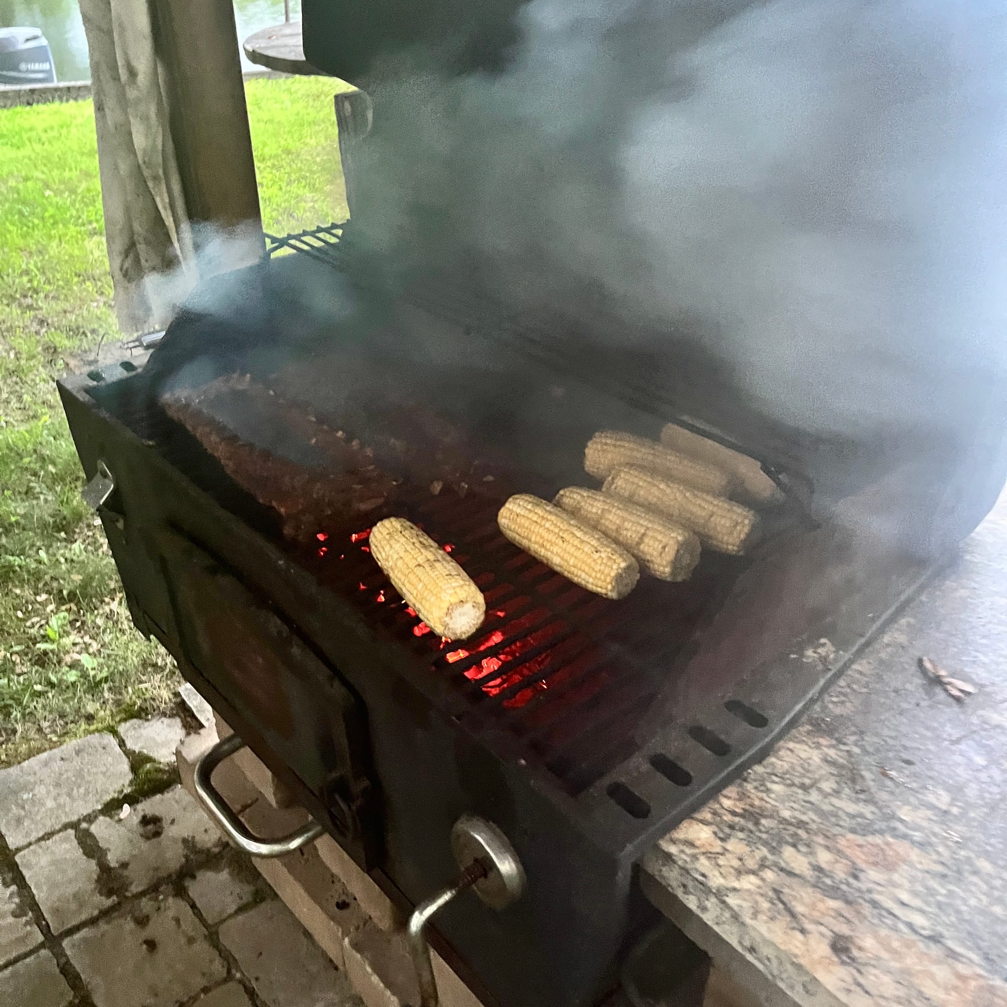 A two-seat spring bouncer in the shape of a fire truck (from a playground at Kohler Andrae State Park in Sheboygan, Wisconsin, where its base springs were left behind)