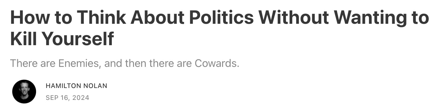 OVER AT HIS newsletter, How Things Work, friend of Indignity Hamilton Nolan wrote about what it means to cast a vote in a political system where candidates almost never reflect your values: