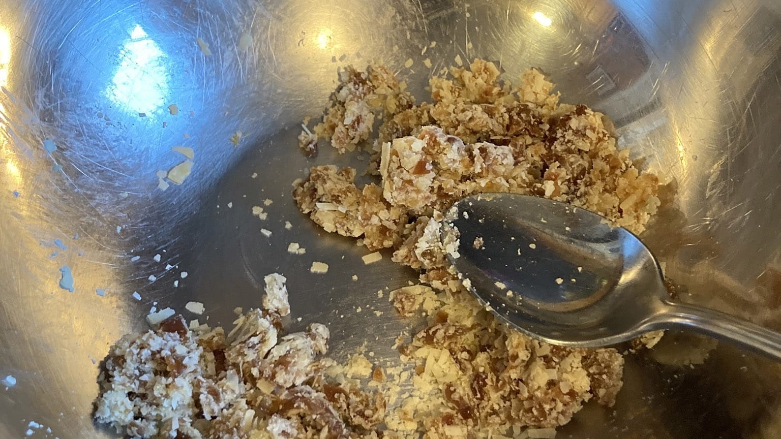 The instructions were vague (“Spread…grated cheese and a layer of finely chopped dates”) so I combined the dates and grated cheese together: