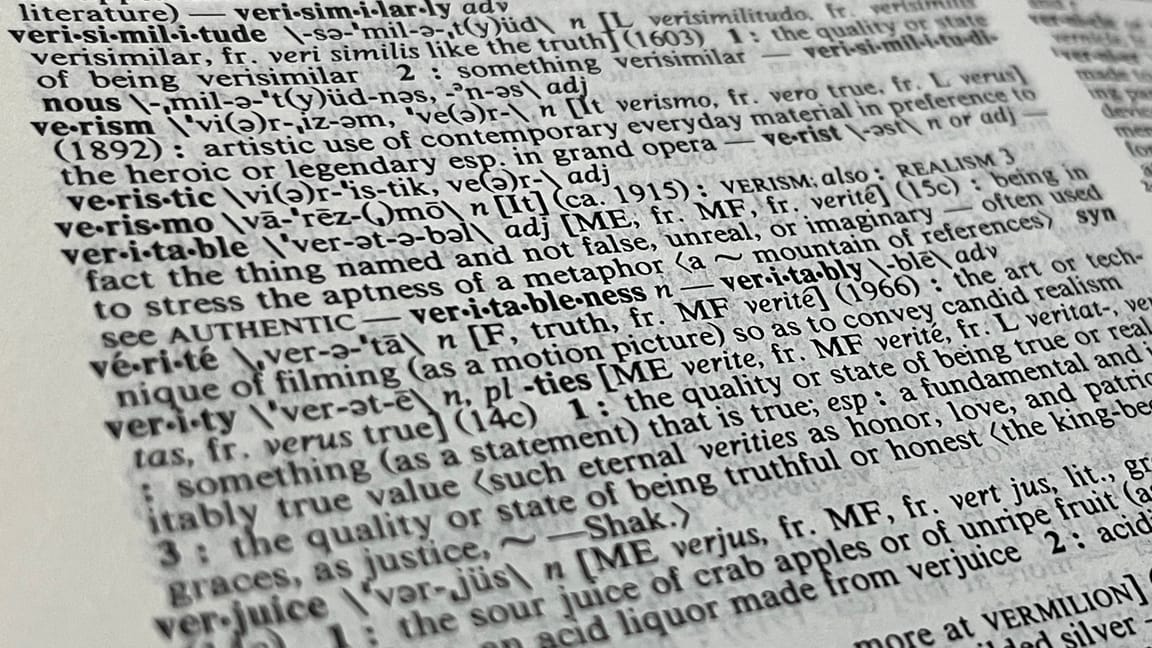 I pulled down the big American Heritage Dictionary I got when I was in middle school myself and was taking a summer course about etymology: "ver•i•ta•ble: adj. Unquestionable; actual; true."