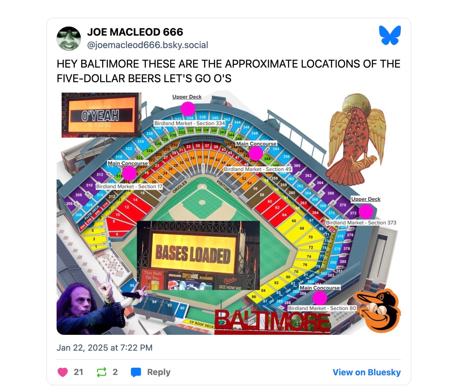 THE HOUSE RAKE on food and drink at big music venues and major league sports stadiums is always daunting, so the half of Indignity that attends Baltimore Orioles home games on the regular at Oriole Park at Camden Yards, was delighted—and then mildly disappointed by the execution of—the institution of the Birdland Value Menu, featuring cheap hotdogs and beer. The hotdogs are half price, and the beers are about one-third what you'd pay at the other stalls for slightly larger quantities. Value!