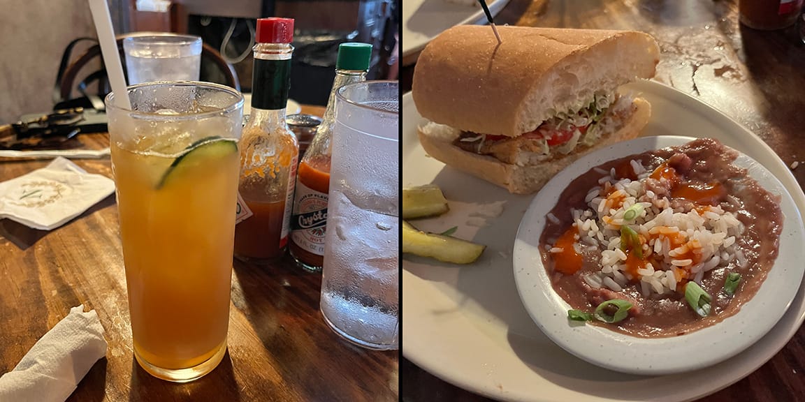 At Napoleon House I had a coupla Pimm's Cups (three) before tucking in to a perfect luncheon experience of a catfish po'boy with a side of red beans and rice.