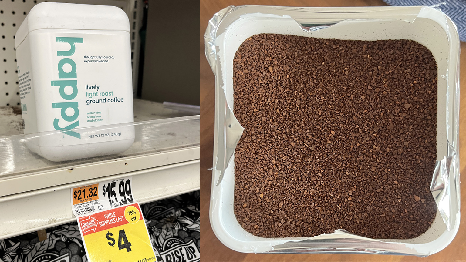 So here is (was) happy™ coffee! Marked down from $15.99, such a deal.