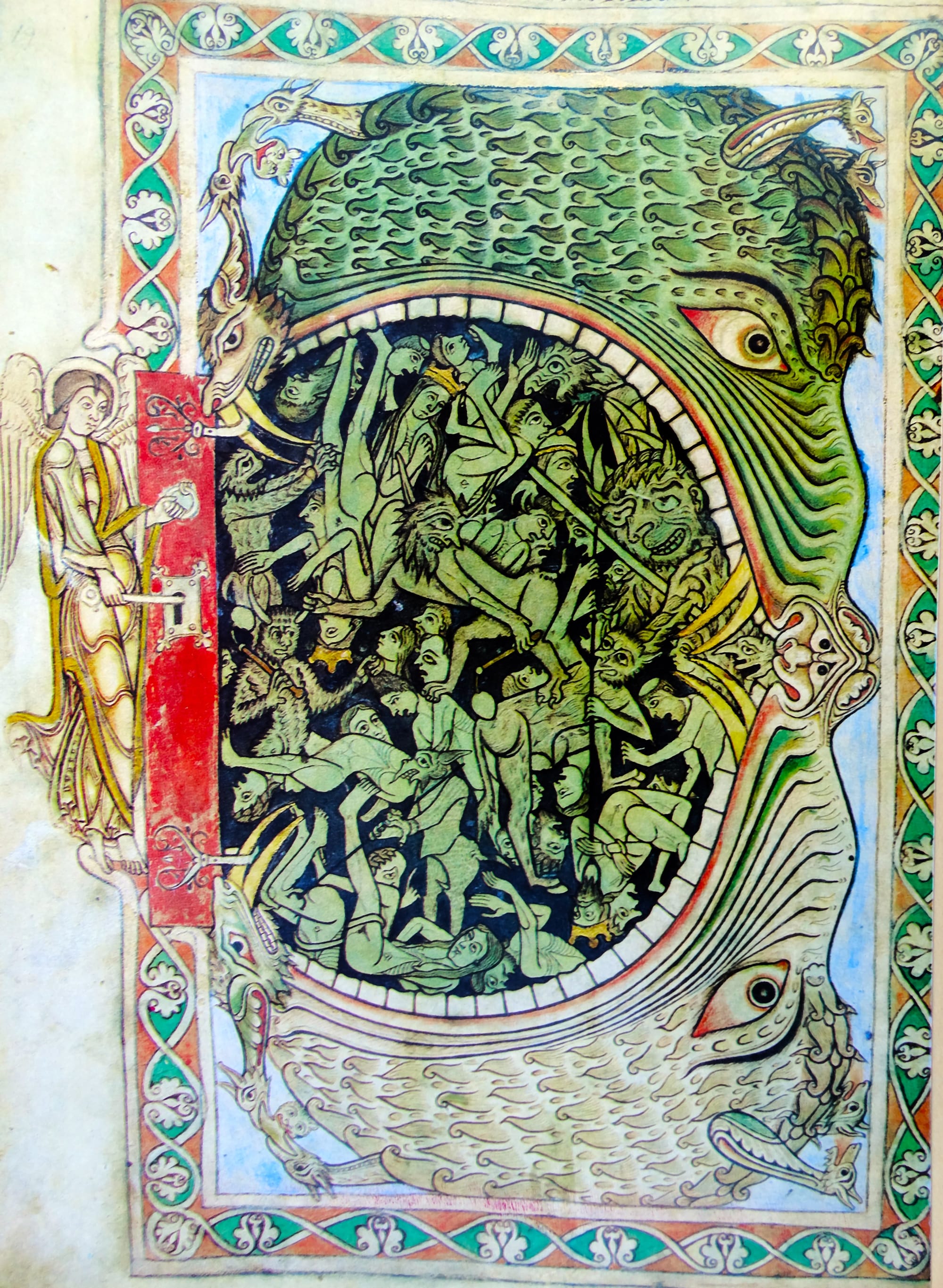 Painting of the Hell mouth with an OLD French inscription that translates to 'Here is Hell and the angel who closes the gate'. Dated 12th Century. (Photo: Photo12/Universal Images Group via Getty Images)