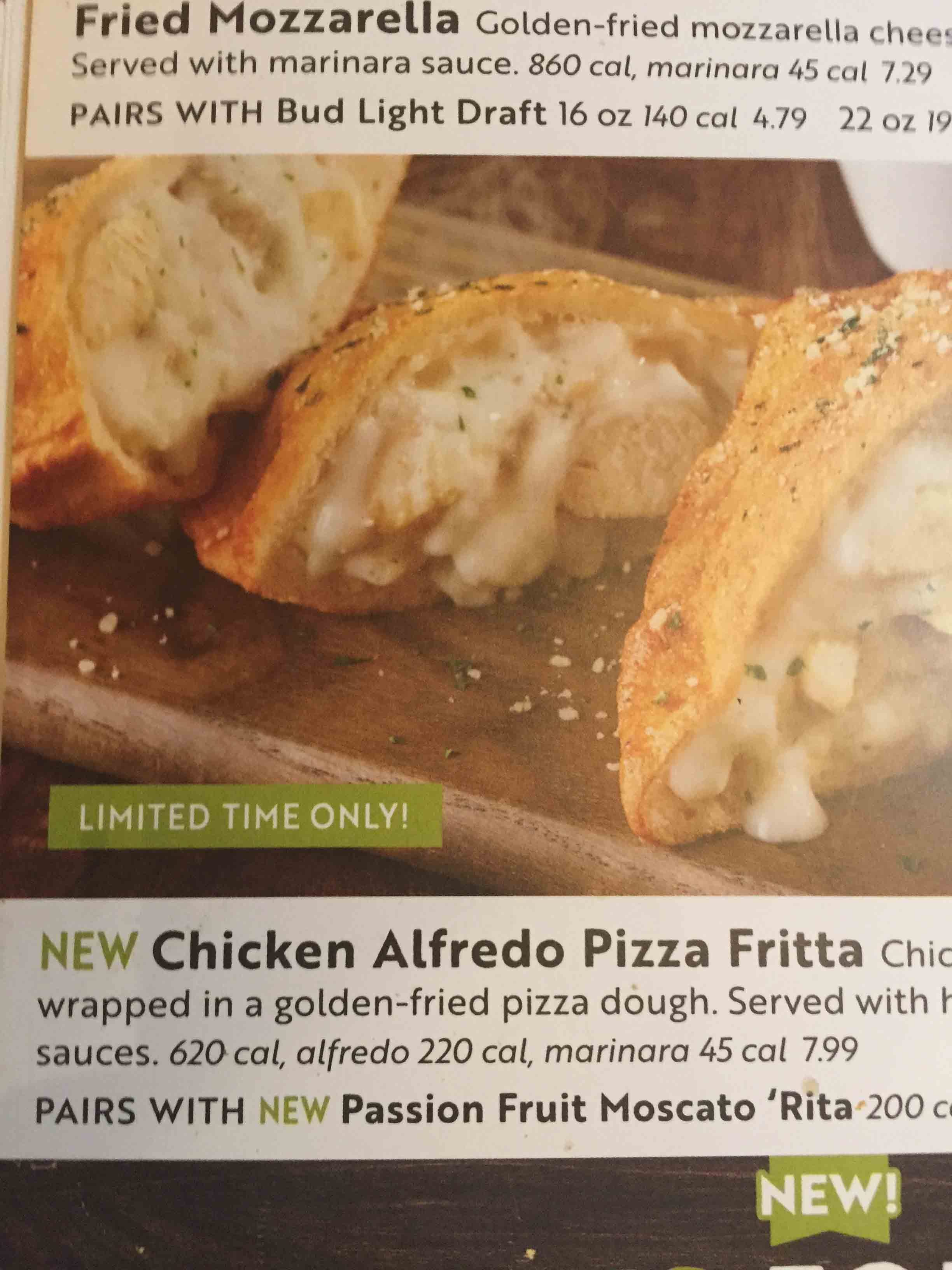 Calories count, wowee, that’s 620 for the item, and then 220 and 45 for the respective alfredo and marina dipping sauces. I know, alfredo sauce on an item that has alfredo sauce inside of it. I ate two frittas at dinner, and didn’t really go crazy on the sauce. No wait, I did, I ate all the alfredo sauce on my half a breadstick, dammit, so let’s call it a million calories and move on.