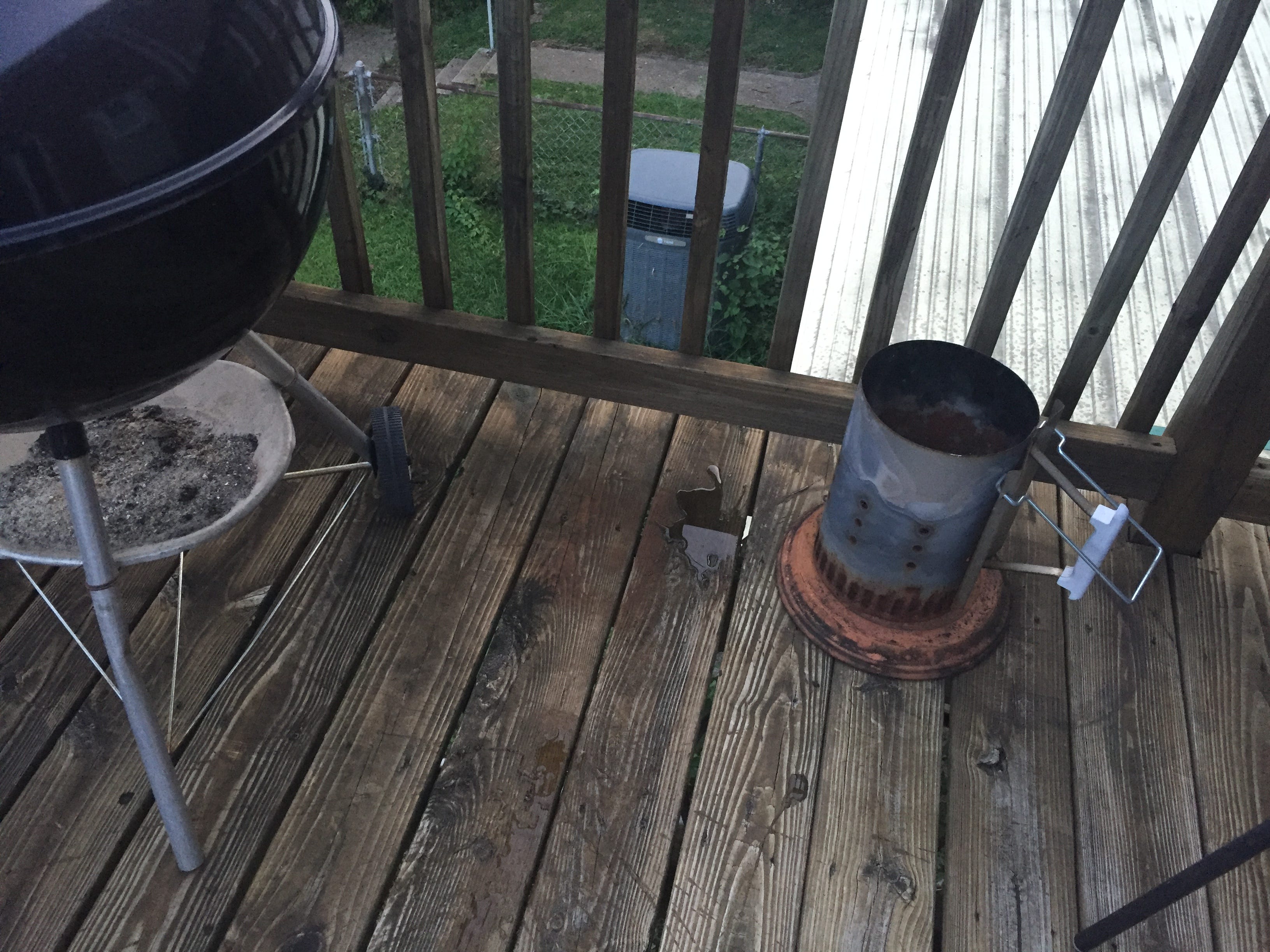 IT WAS THE unappetizing color of a thing that you don’t buy, a thing that finds its way into your life, and the little square beige plastic table served on the tableless open backyard deck as a place where you could put a drink, and eventually as a way to protect a later arrival—the chimney-style charcoal starter—from the elements.