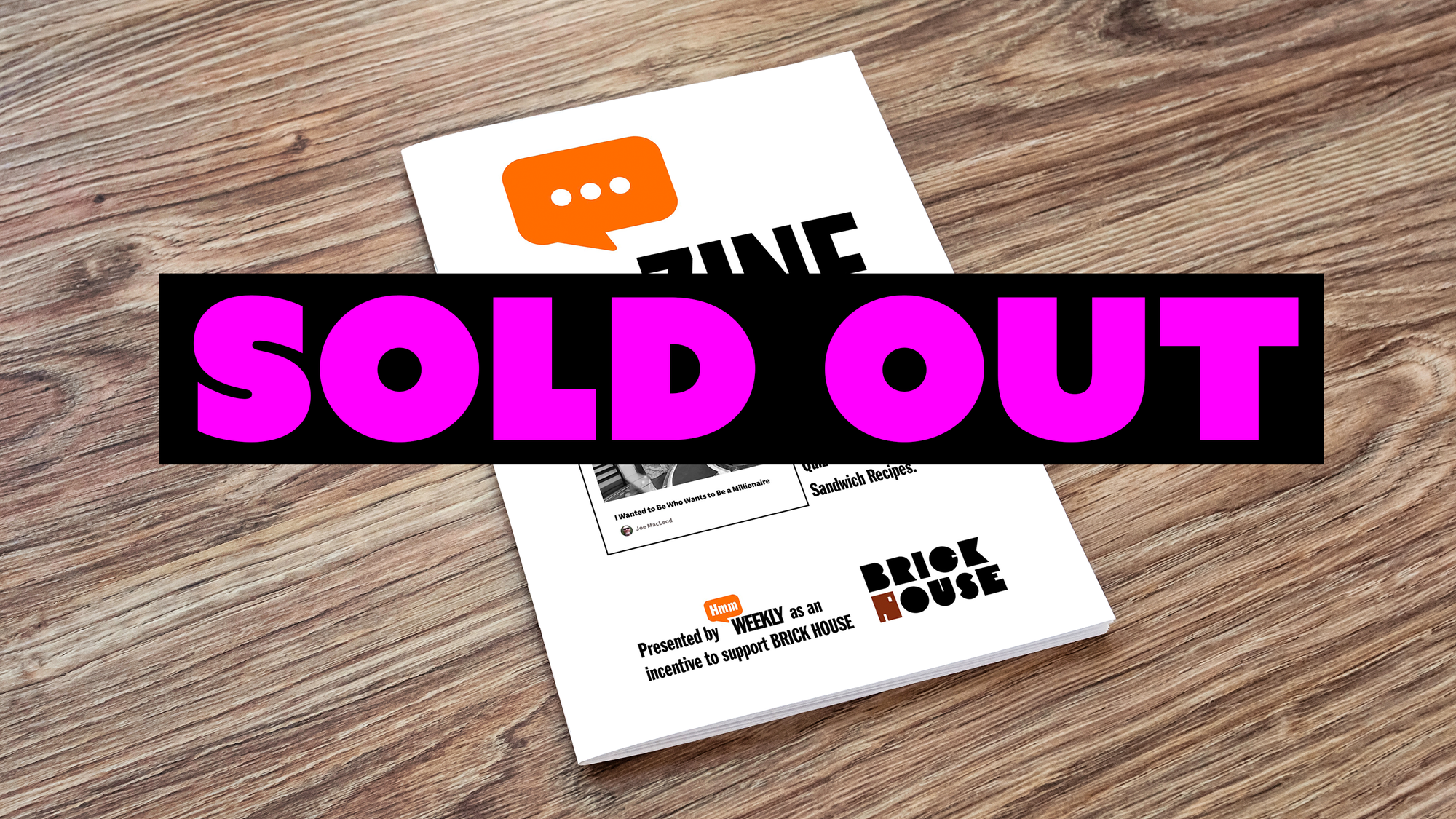 ZERO COPIES LEFT: HMM WEEKLY MINI-ZINE, Subject: GAME SHOW, Joe MacLeod’s blah blah blah, etc., of his Total Experience of a Journey Into Television, expanded from the original published account that can still found here at Hmm Daily, but you know what? No more printed, expanded, more fun, tangible, printed-on-paper zine! No more! ALL GONE! Thank you! People like to reminisce about this special MINI ZINE, and how it featured other viewpoints related to an appearance on the teevee game show Who Wants to Be A Millionaire, but now it is just a memory, no longer available for purchase at SHOPULA. However, there are many other fine things to read over there! Go take a look!