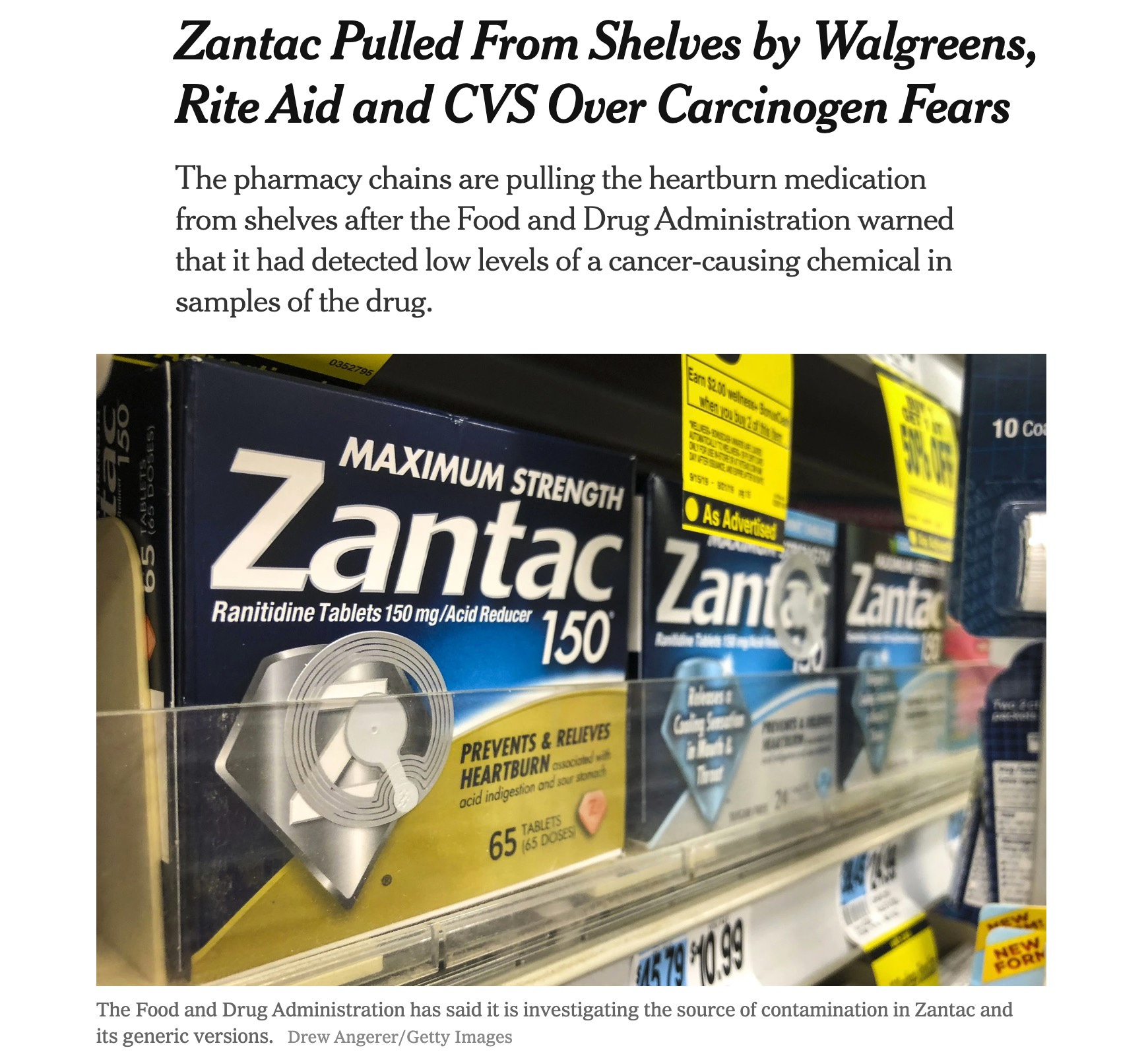 The FDA does not recommend users stop taking ranitidine products. Zantac maker Sanofi said it will continue shipping the drug to the U.S. Three other drugmakers – Apotex, Sandoz and GlaxoSmithKline – recalled generic versions of Zantac sold at Walgreens, Walmart and Rite Aid. — USA TODAY