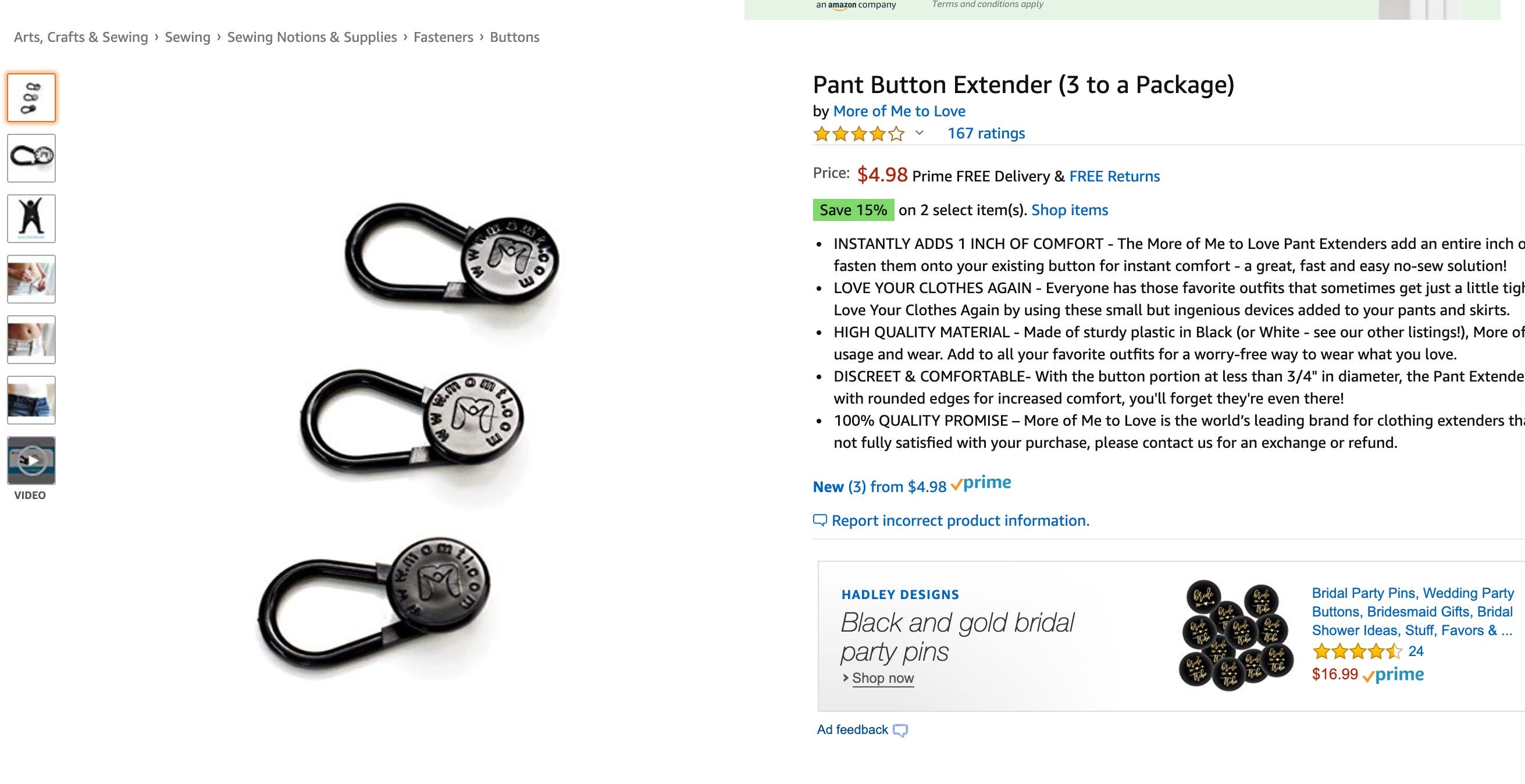 I’M TRYING TO lose a few pounds, for my health, and to not have to spend money on new pants or one of those gimmicks you can put on your pants button to make the waistline more accommodating, have you seen those, the “button extender?” I put a link here so you can see this device, but I don’t get any sort of Affiliate dough from Amazon Dot Com for it, the link is provided to you, the reader of the Mr. Wrong Column, because I want to share Knowledge, that’s all, you’re welcome.