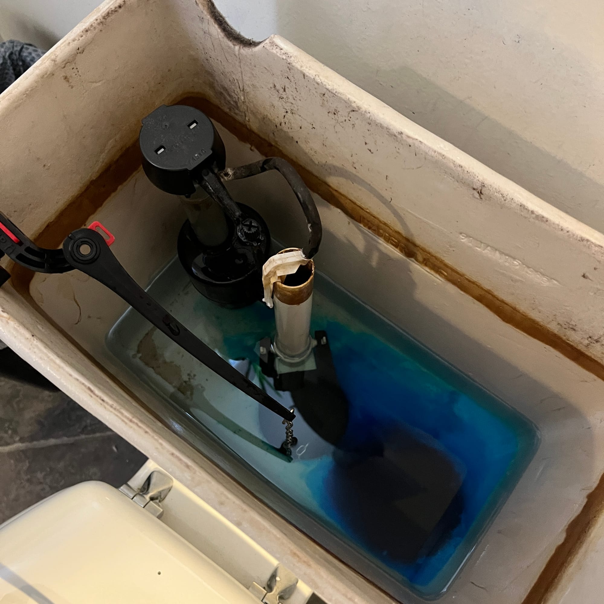 Or howabout this? The goddamn toilet wouldn’t stop running, so I looked at a YouTube, and saw how to try and fix it. That's a puzzle, this guy on the YouTube solved my puzzle for me! I hadda plunge my hands deep inside the tank and get toilet water on ’em, but I was able to lower the thing with the screw in it and undo the top thing to clear it of debris and put it back to fix it! Toilet no longer runs excessively! That’s conserving water! Natural resources! I wonder how much time my toilet dude spends making puzzles, or if he’s out there doing Real Things such as helping people fix the running toilets of America? Also, that’s the name of my new band, The Running Toilets of America!
