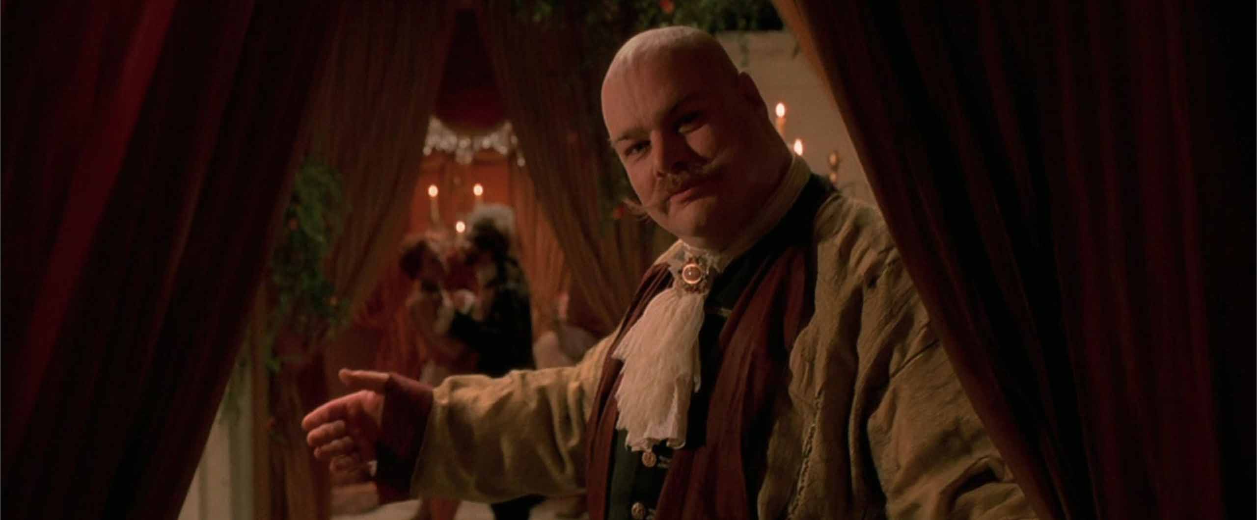 So the movie's conspiracy as unveiled—a collaboration among fanatical Catholic clergy, decadent aristocrats, and downtrodden, Roma-coded outcasts to undermine His Majesty Louis XV—seems intentionally incoherent in its structure and motives, absolving the viewer of having their rooting interests pinned to one side or the other of French history. Even the frame tale of the movie, in which a noble who was friendly to Fronsac is setting it all down as memoir before going out to surrender to a Revolutionary mob, feels designed to reinforce the message that any actual discernible 18th century politics here are moot.