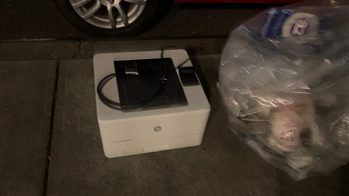 Every once in a while I would wistfully read the legendary printer-recommendation article on the Verge, where Nilay Patel told the reader to "just buy whatever Brother laser printer is on sale and never think about printers again" and then padded out the rest of the article with ChatGPT text so search engines wouldn't downrank it for being too short and vague. A printer you didn't have to think about, a printer that would simply work—amazing! Amazing and unattainable, as long as the LaserJet Pro M404dw was squatting there on its little cart between the bookcase and the heater cabinet, where I would have to crouch down every time I needed to wrangle with it. But I would end up with a document, eventually, right? Even if I also ended up with some crumpled paper and a throbbing blood vessel in my neck and 15 minutes of my life irrevocably wasted. I couldn't just get a new printer when we already had a printer.