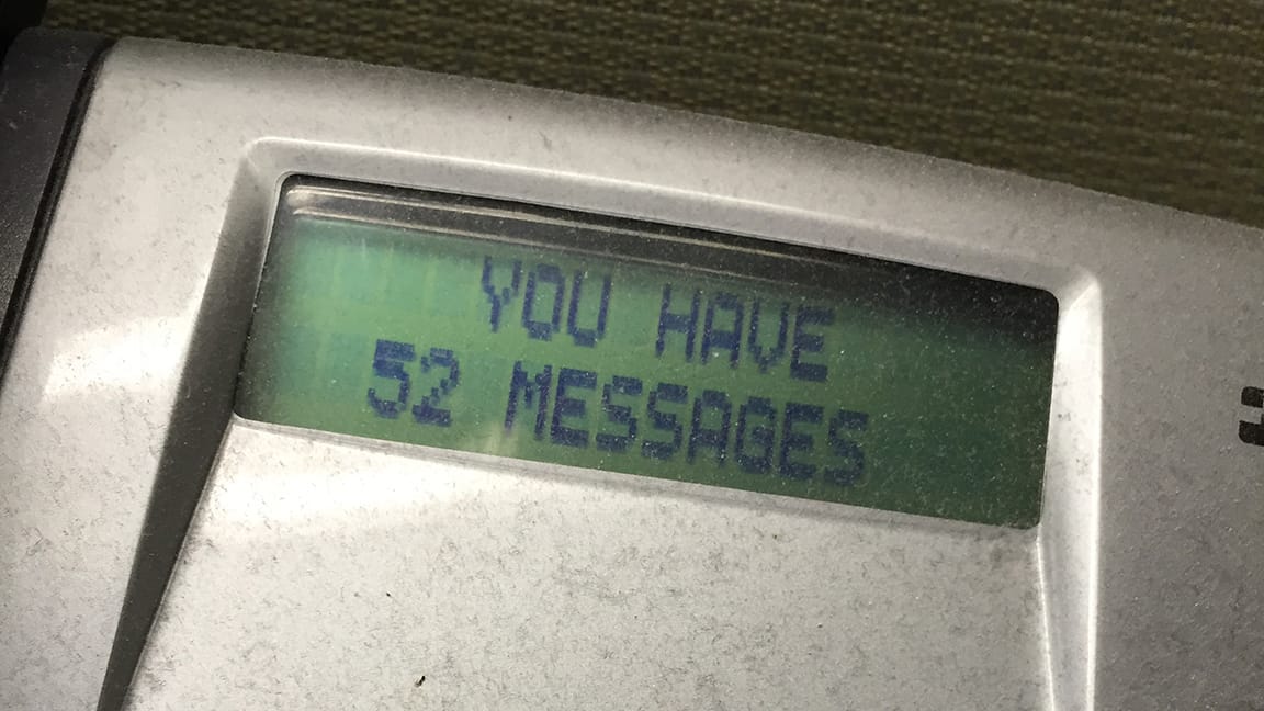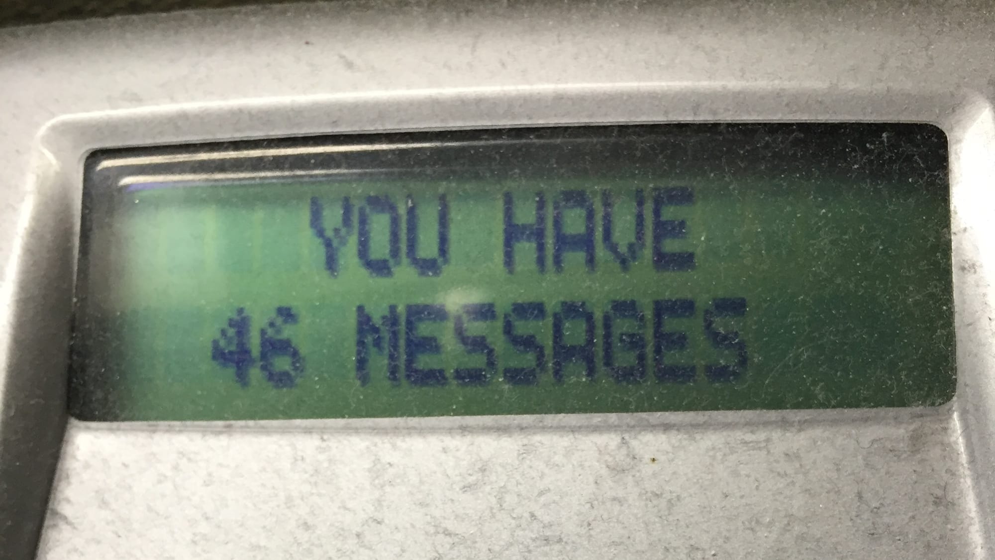 My NO VOICE MAILS conceptual/performance art piece, 52 messages along on its way to a hundred. Also, look at the dust on that phone, urghh.