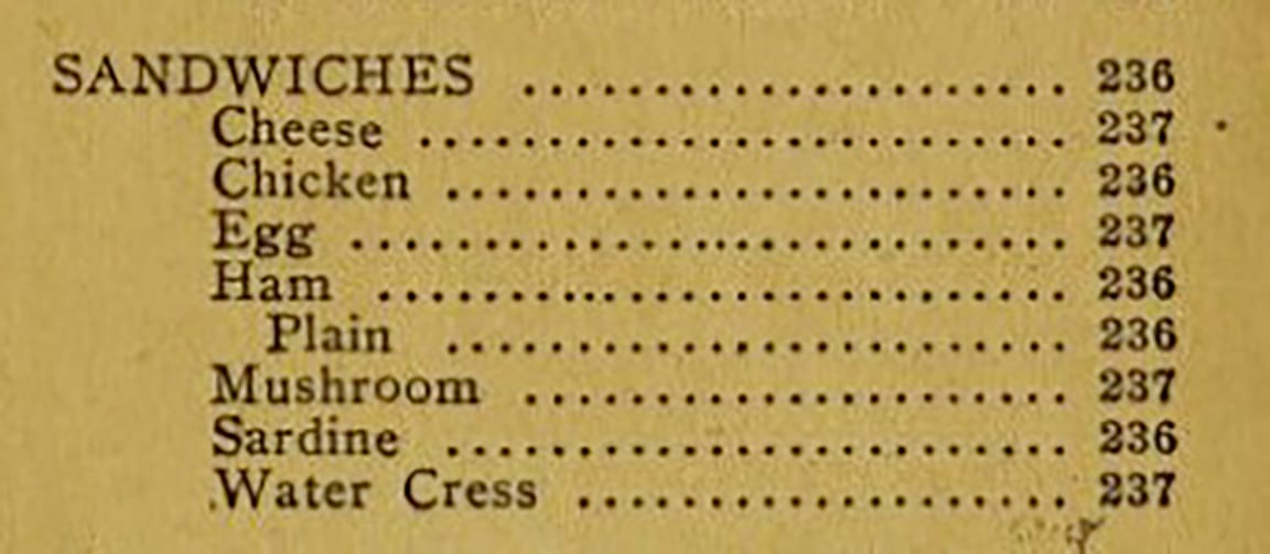 WE PRESENT INSTRUCTIONS in aid of the assembly of a sandwich selected from The White House Cook Book: A Comprehensive Cyclopedia of Information for the Home, by Hugo Ziemann and Mrs. Fanny Lemira Gillette, published in 1919, and available at archive.org for the delectation of all.