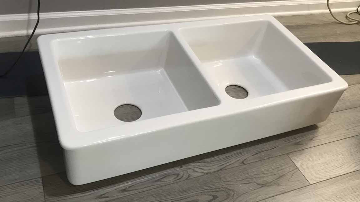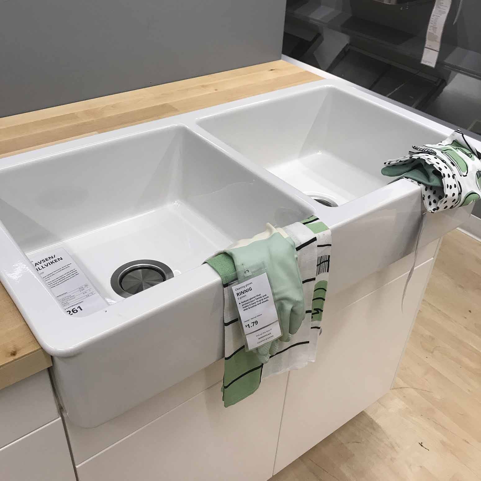 The Farm sink sits really low on the supporting cabinet in order to display its full and massive Farm Sink-ness, so the cabinet door is not as tall, which I realized when I was looking at our in-progess new kitchen and the the shiny-new under-sink cabinet doors.