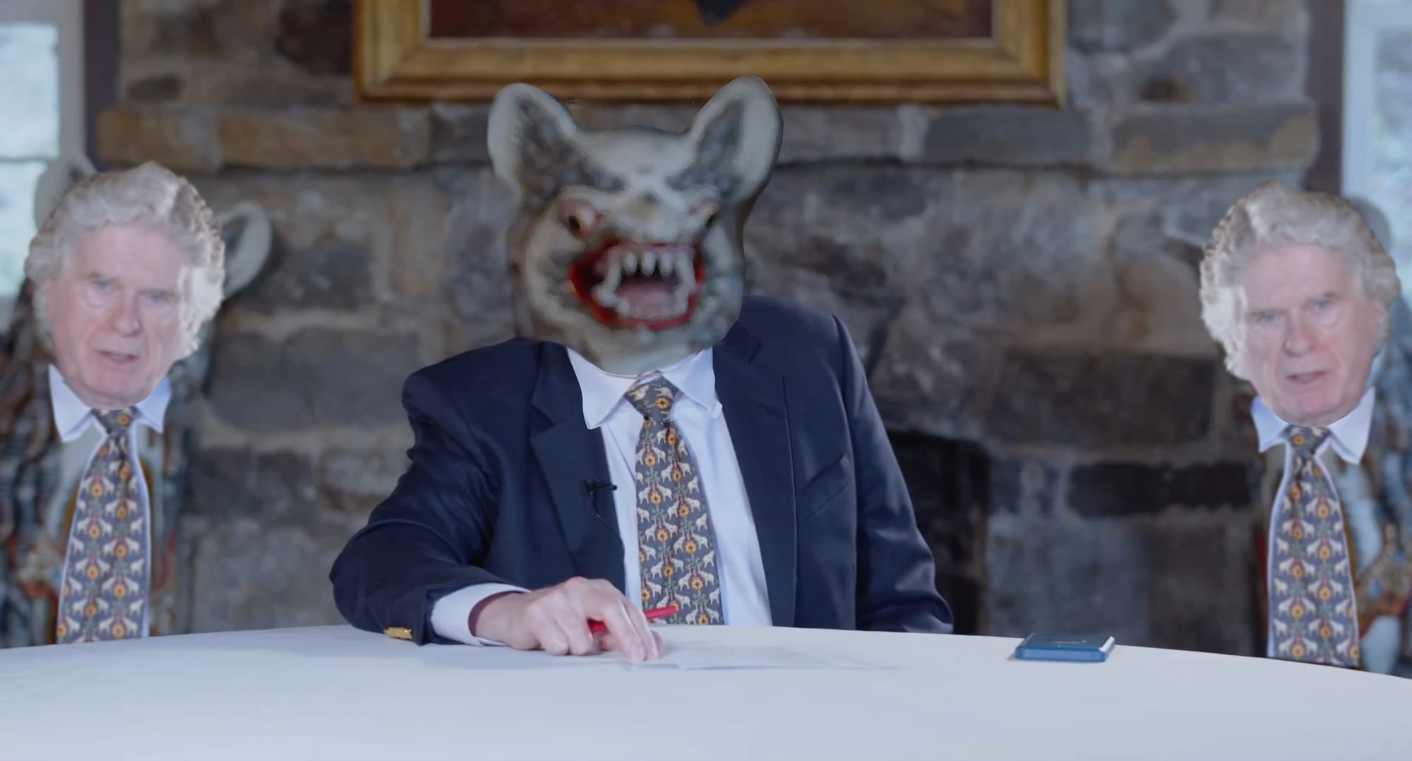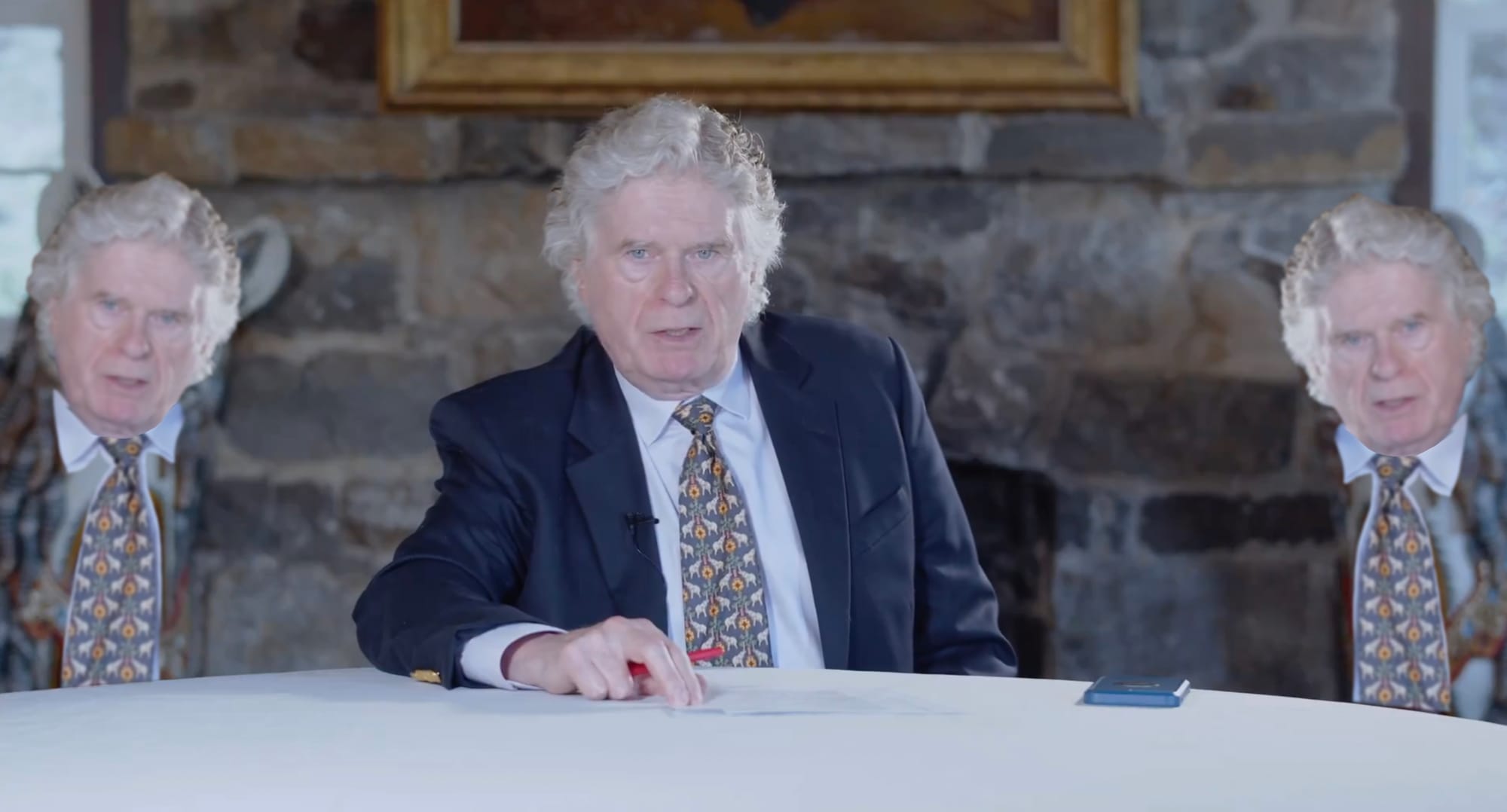 THE PROFESSIONAL RACIST Peter Brimelow posted a video on the social media platform called X today saying that his long-running white nationalist website, VDARE, will have to shut down under the financial strain of dealing with multiple lawsuits over alleged mismanagement. The video appears to have been shot in the castle purchased by VDARE's nonprofit foundation, which Brimelow and his wife were accused of using as their own residence. Brimelow was flanked in the video by a pair of...sculptures? They looked like folk-art renderings of Scabby the Rat. Unable to decide which part of the frame was the most upsetting place for the eye to go, we tried rearranging the components.